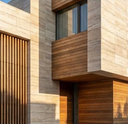 برای نما معمولاً تراورتن پیشنهاد میشود؛ چون ازنظر فنی سبک تر از سنگهای دیگر می باشد و تخلخل و بافت آن با ملات نما سازگار است، چسبندگی خوبی دارد و سالهاست در نماهای مختلف استفاده شده و امتحان خود را پس داده است. بسته به طرح، سورتهای روشن یا تیره را میتوان انتخاب کرد.