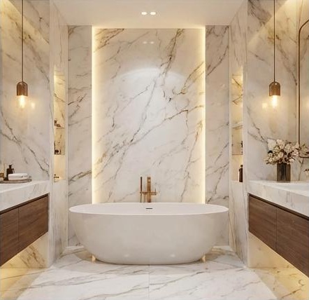 برای فضاهای داخلی مثل کف پذیرایی، اتاقها و راهپله معمولاً مرمریت انتخاب مناسبتری است؛ هم از نظر یکنواختی سطح و رنگ، هم از نظر جلوهی لوکس و یکدست. تراورتن بیشتر برای نما و فضاهای نیمهباز توصیه میشود.